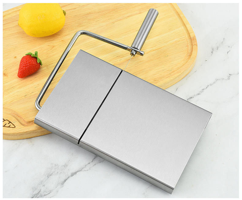 เครื่องตัดชีสและเต้าหู้แบบมือถือ ทำจากสแตนเลส เป็นมิตรกับสิ่งแวดล้อม ใช้ตัดฟอย-กราส์และเนย พร้อมลวดตัดเปลี่ยนได้ อุปกรณ์ตัดในครัว