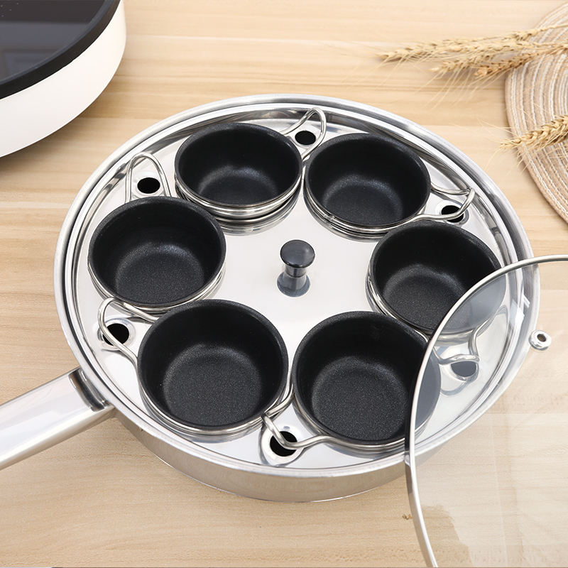 หม้อต้มไข่สแตนเลสพร้อมถ้วยแบบนอนสติ๊ก,กระทะต้มไข่เข้าไมโครเวฟได้6ชิ้น