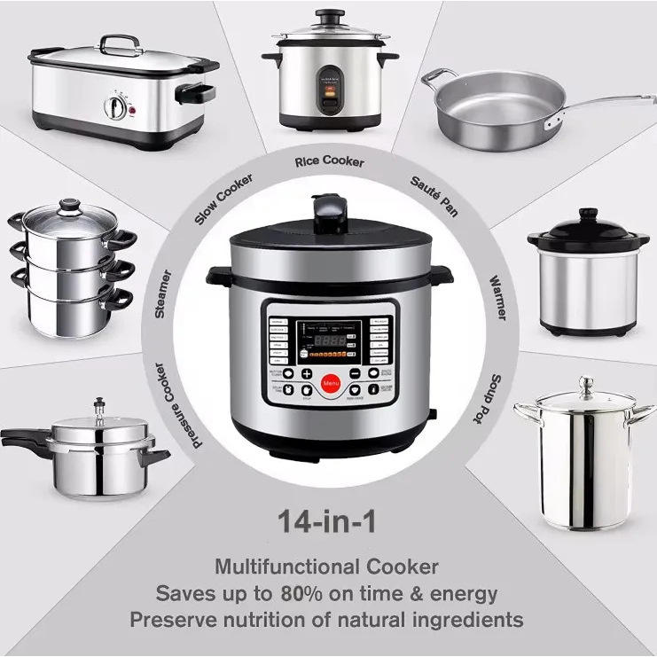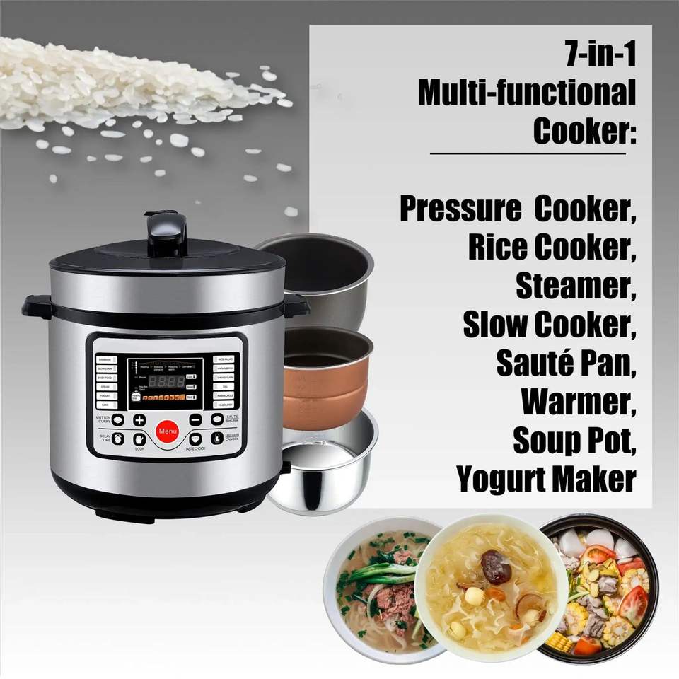 หม้อหุงข้าวไฟฟ้าสเตนเลสสตีล 6 ลิตรอเนกประสงค์ ใช้งานง่ายเพียงปุ่มเดียว สำหรับใช้ในบ้าน พร้อมตัวตั้งเวลา และหม้อในเคลือบสารกันติด