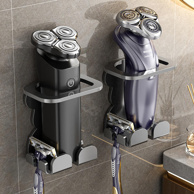 ที่วางเครื่องโกนหนวดไฟฟ้าสแตนเลสแบบติดผนัง ชั้นวางของในห้องน้ำ ดีไซน์ทรงสี่เหลี่ยมทนทาน