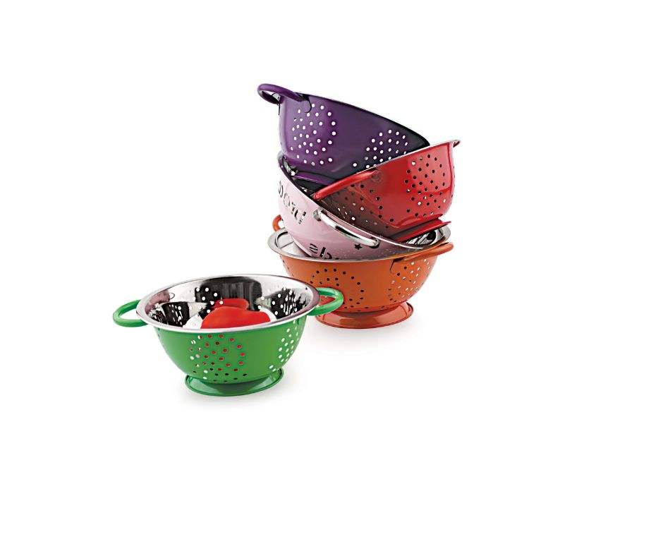 ชุดกระชอนเคลือบสารเคลือบหลายสีทำจากสแตนเลสสำหรับใช้ในชีวิตประจำวัน