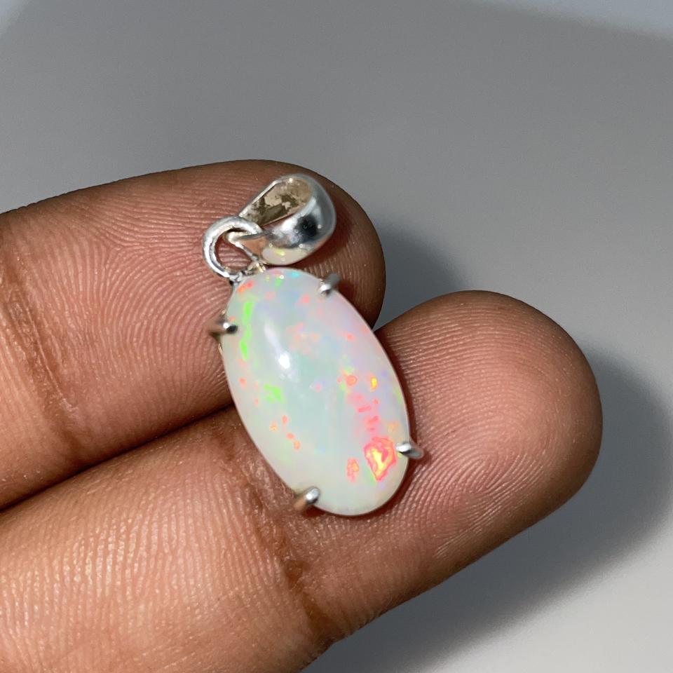 จี้โอปอลเอธิโอเปียนสแตนเลสสไตล์วินเทจคุณภาพไฟสีรุ้งโอปอลสำหรับผู้หญิงผู้ชาย