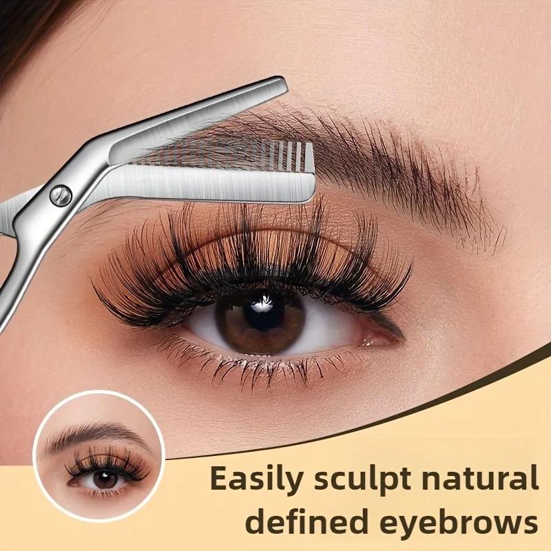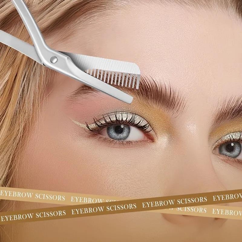 กรรไกรตัดคิ้วสแตนเลสพร้อมหวี สำหรับตกแต่งและจัดแต่งทรงผมบนใบหน้า เครื่องมือดูแลผิวหน้าที่สมบูรณ์แบบ ของขวัญสำหรับการดูแลผิวหน้า