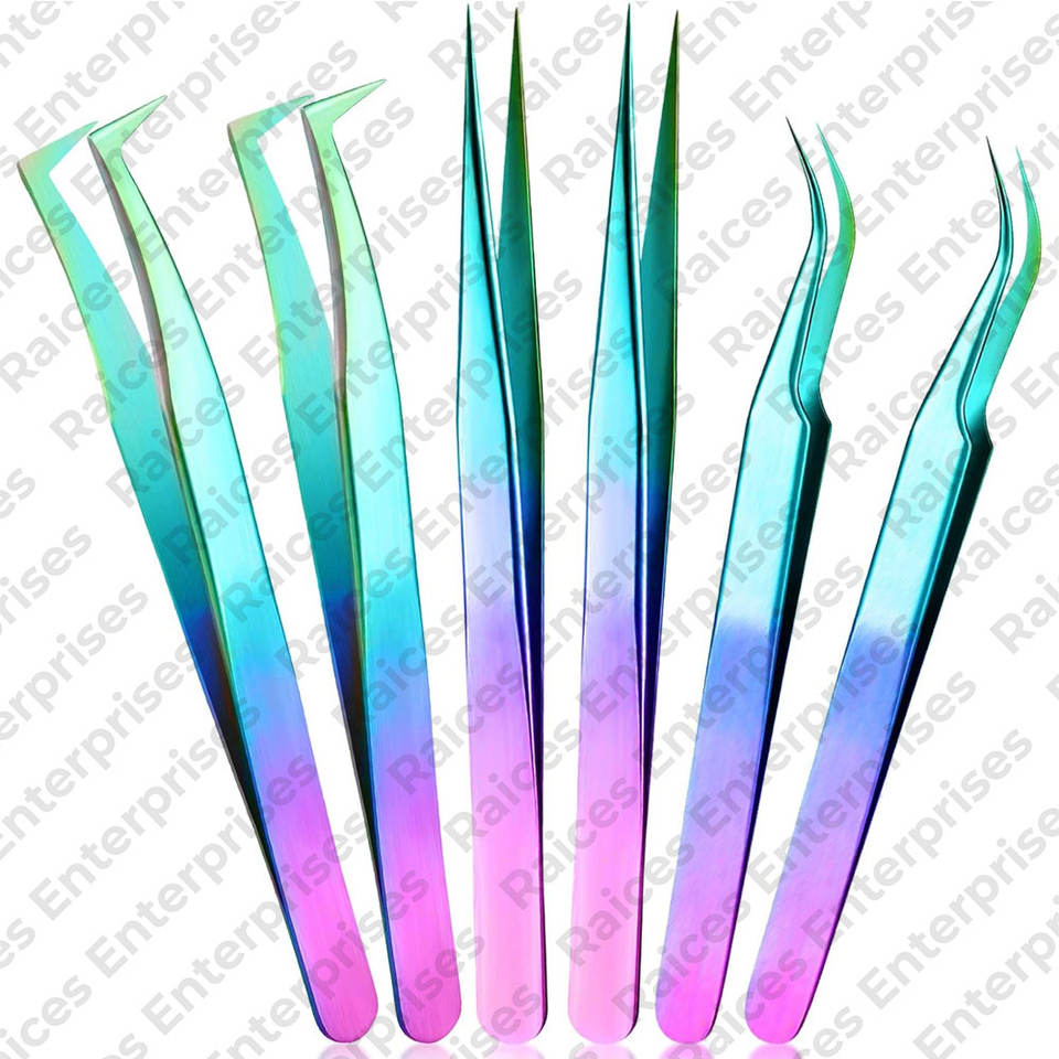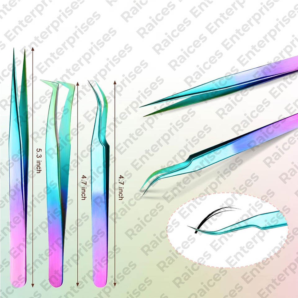 ชุดแหนบขนตาสแตนเลสแบบพรีเมี่ยมปลายแหลมโค้งตรงสำหรับการต่อขนตาเพิ่มวอลลุ่มเส้นใยนำกลับมาใช้ใหม่ได้
