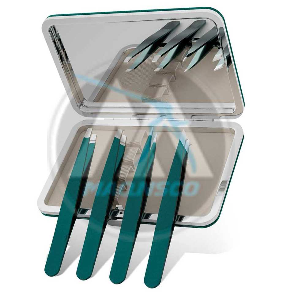 แหนบถอนขนตาสแตนเลสปลายเรียวแหลมมีวอลลุ่มแหนบกรณีกระจกสำหรับผมคางผมคิ้ว