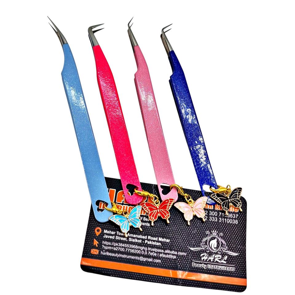 แหนบสแตนเลสสำหรับต่อขนตา พร้อมพวงกุญแจรูปผีเสื้อและจี้-ทนทาน ป้องกันไฟฟ้าสถิต เหมาะสำหรับใช้ในร้านเสริมสวย