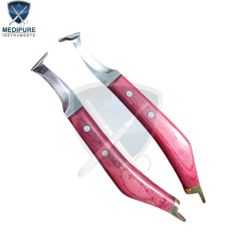 มีดปอกกีบสแตนเลสพร้อมด้ามไม้สำหรับตัดแต่งดูแลกีบม้าแพะ