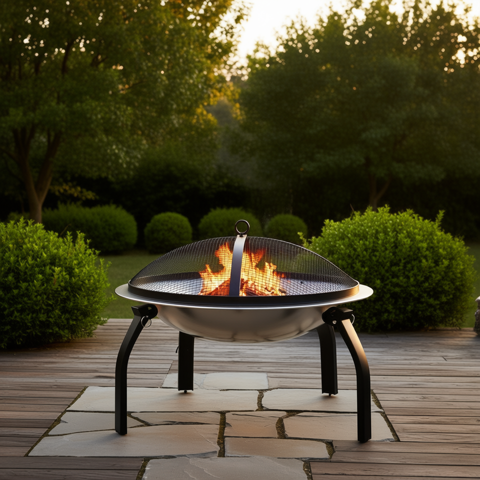 เตาไฟสแตนเลสและเตาบาร์บีคิว ขนาด 22 x 22 x 19 3 นิ้ว สำหรับกลางแจ้ง พร้อมอุปกรณ์จุดไฟ ใช้ฟืนแบบพกพา ตั้งพื้นได้