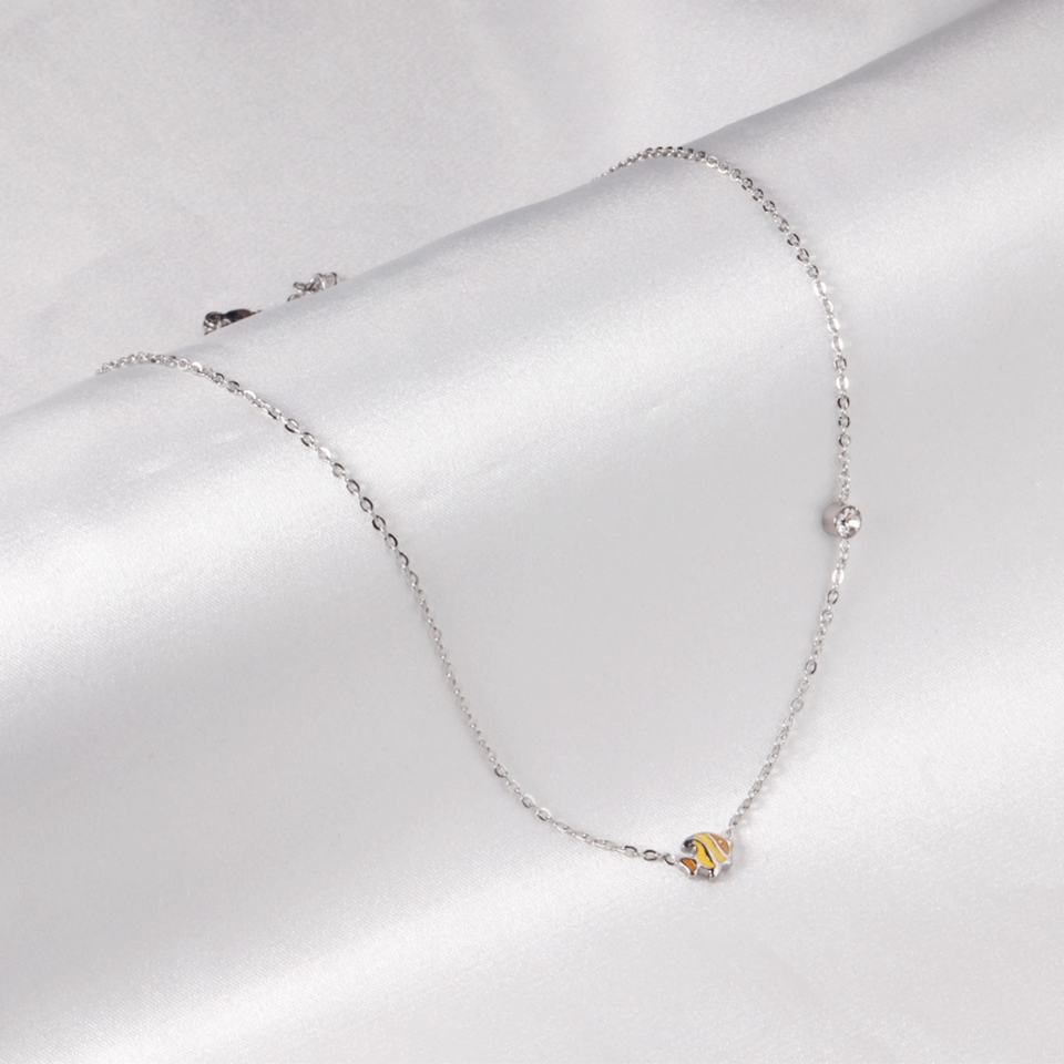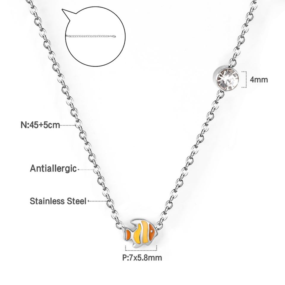 สร้อยคอปลาทองสแตนเลสสตีล ชุบทอง 18k PVD พร้อมลูกปัด สำหรับผู้หญิง