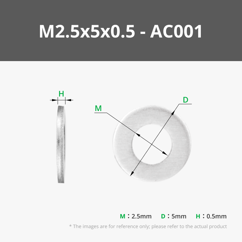 แหวนรองสแตนเลส M2.5x5x0.5 (100 ชิ้น) - รหัสสินค้า AC001