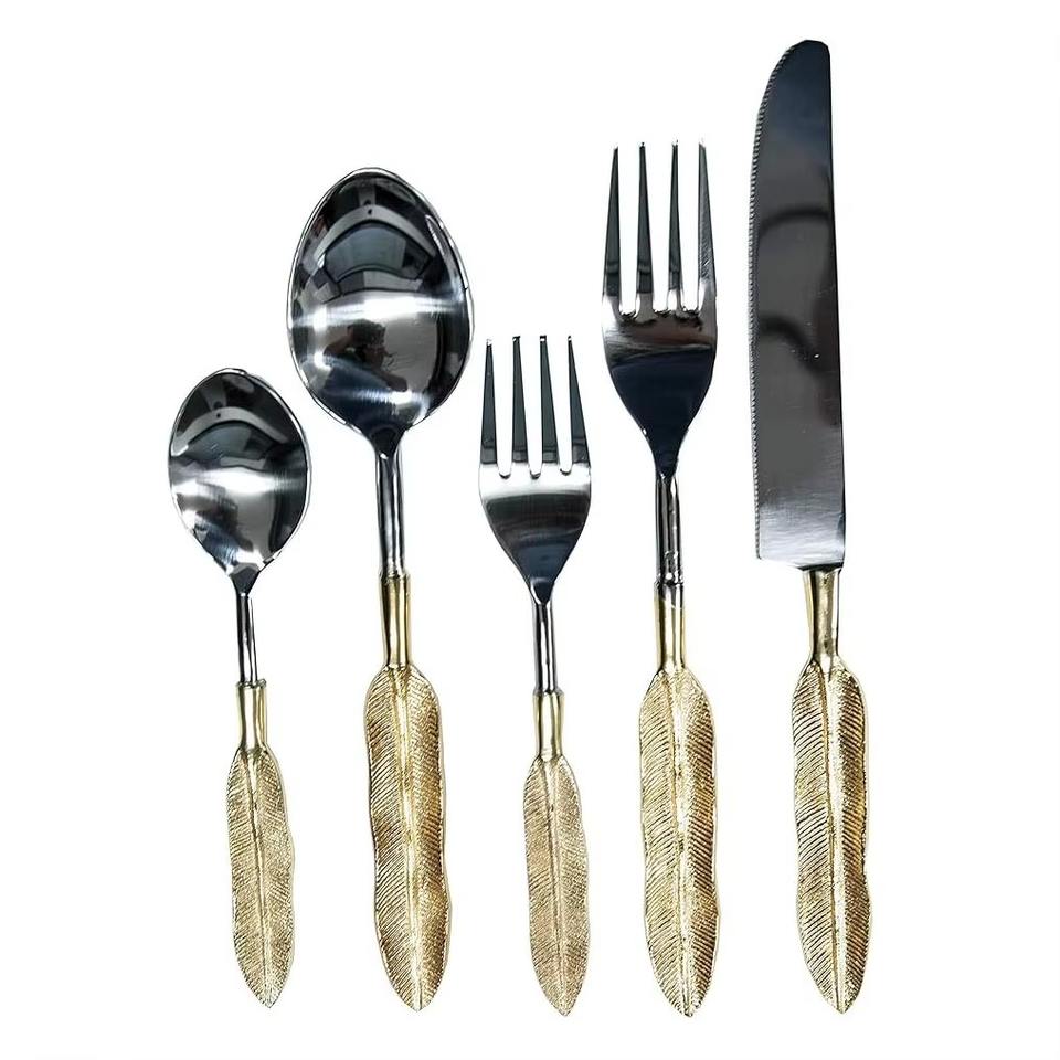ชุดเครื่องใช้บนโต๊ะอาหารทำจากเหล็กสแตนเลสชุดเครื่องใช้บนโต๊ะอาหาร3สีเงิน5ชุด