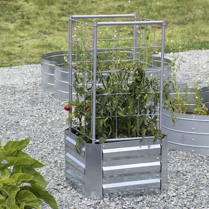 กระถางดอกไม้และกระถางปลูกต้นไม้ทำจากสเตนเลสชุดเตียงในสวนกลางแจ้งพร้อมต้นไม้สำหรับปีนเถาองุ่นสวนของตกแต่งบ้าน