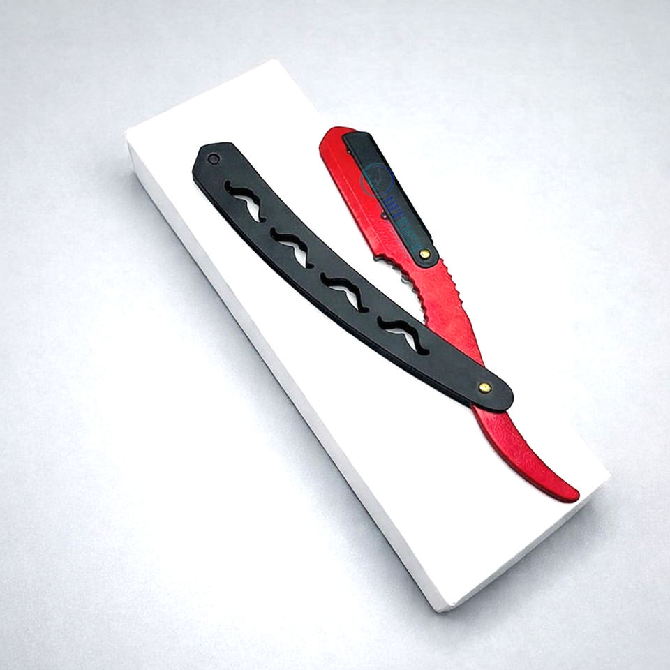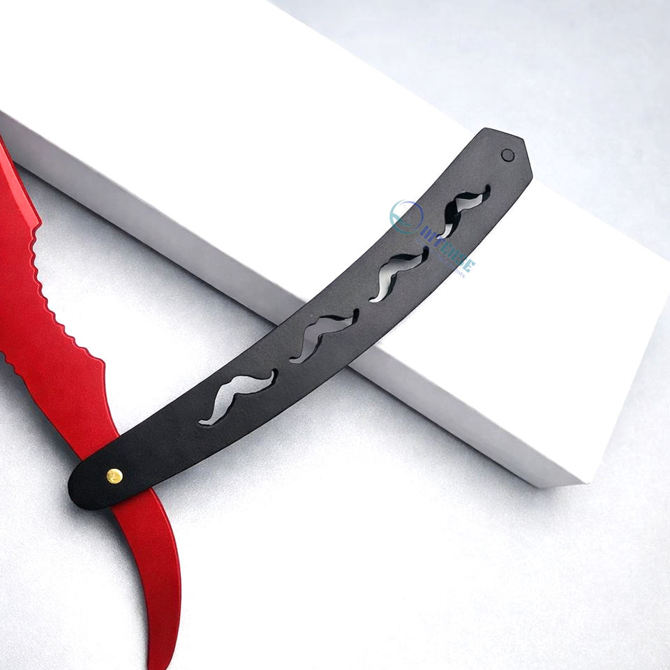 มีดโกนพับได้สแตนเลส ใบมีดสีเงิน ด้ามจับสีดำ มีดโกนตรงแบบมืออาชีพสำหรับจัดแต่งทรงเคราและหนวด