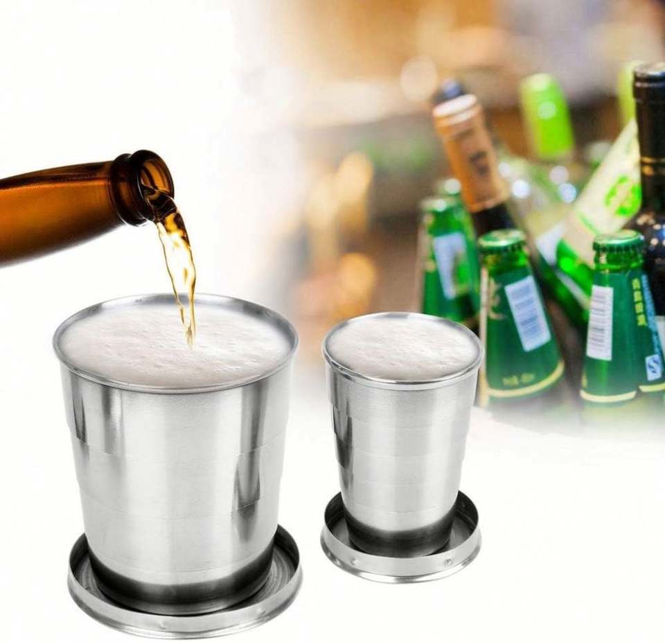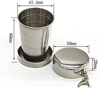 ถ้วยพับสแตนเลส ถ้วยน้ำดื่มแบบพกพา ถ้วยพับได้แบบยืดหดได้สำหรับการเดินทางกลางแจ้งพร้อมพวงกุญแจ