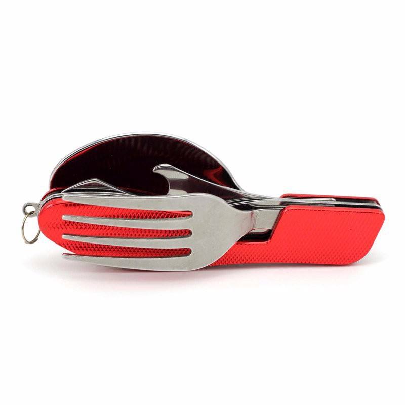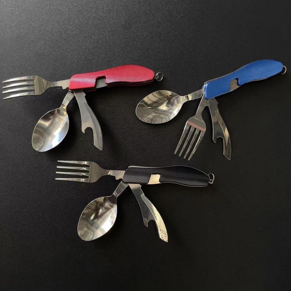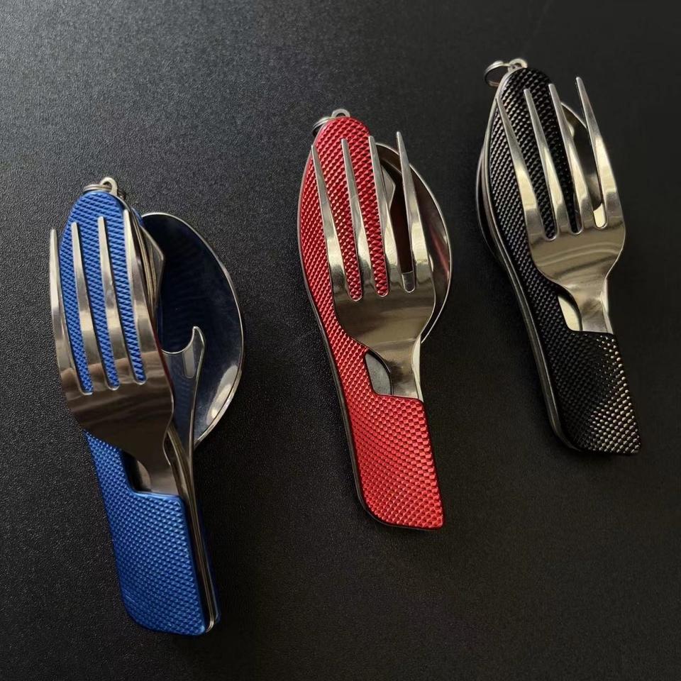 ชุดช้อนส้อมสแตนเลสแบบพับได้แบบพกพาช้อนส้อมมีดชุดอุปกรณ์ตั้งแคมป์รูปร่างไม่สม่ำเสมอเครื่องมือเอาตัวรอด XR78966