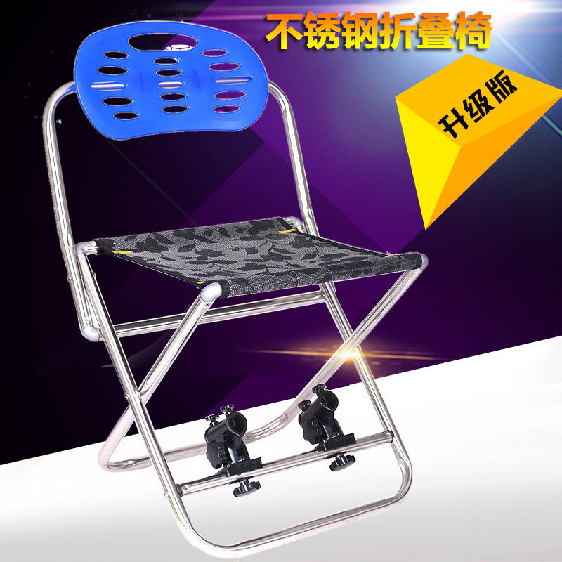 เก้าอี้ตกปลาพับได้สแตนเลสแบบพกพาสำหรับใช้งานกลางแจ้ง พร้อมที่ยึดปืน ขนาด 34x30x60 ซม. ผลิตในจีน