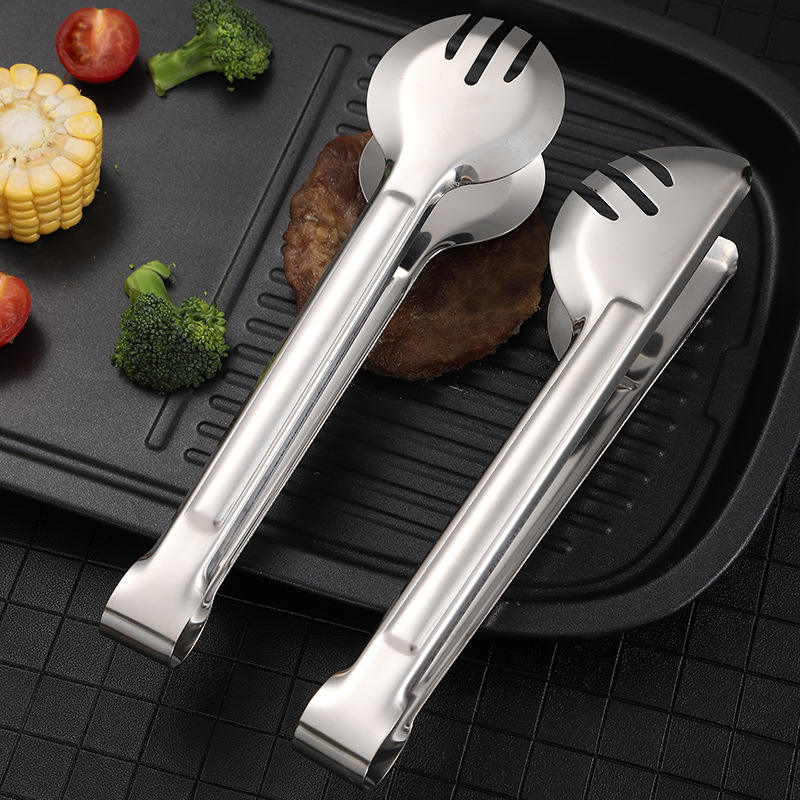ที่คีบอาหารสแตนเลสสตีลที่คีบขนมปังสเต็กที่คีบอาหารที่คีบบาร์บีคิวของโรงแรมคลิปบุฟเฟ่ต์ครึ่งวงกลมอเนกประสงค์