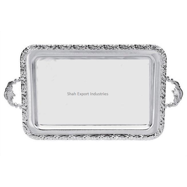 ชุดถาดเสิร์ฟอาหารสแตนเลสขนาดใหญ่ถาดเสิร์ฟอาหารเย็นและอาหารเช้าทำจากโลหะงานหัตถกรรมชุบเงิน