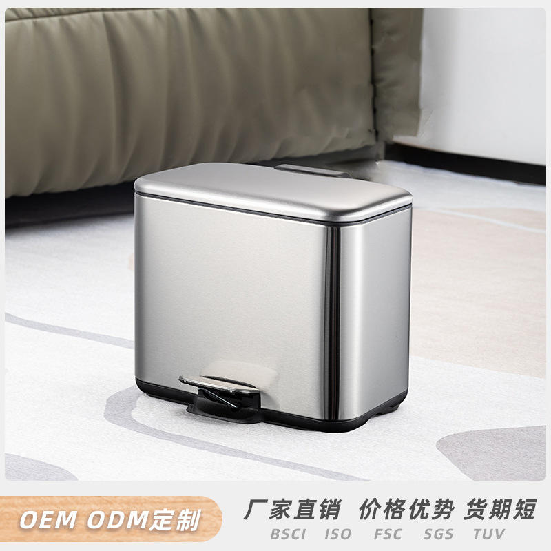 ถังขยะสแตนเลสแบบเหยียบ 3 ลิตร ทรงสี่เหลี่ยม สำหรับใช้ภายในอาคาร มีสีเงิน ดำ ขาวให้เลือก