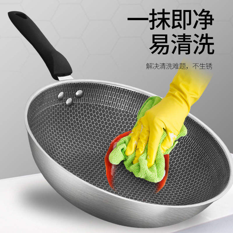 กระทะสแตนเลสแบบรังผึ้ง ไม่เคลือบสารกันติด หนาพิเศษ สามชั้น ทรงกลม สำหรับทำอาหารในครัว