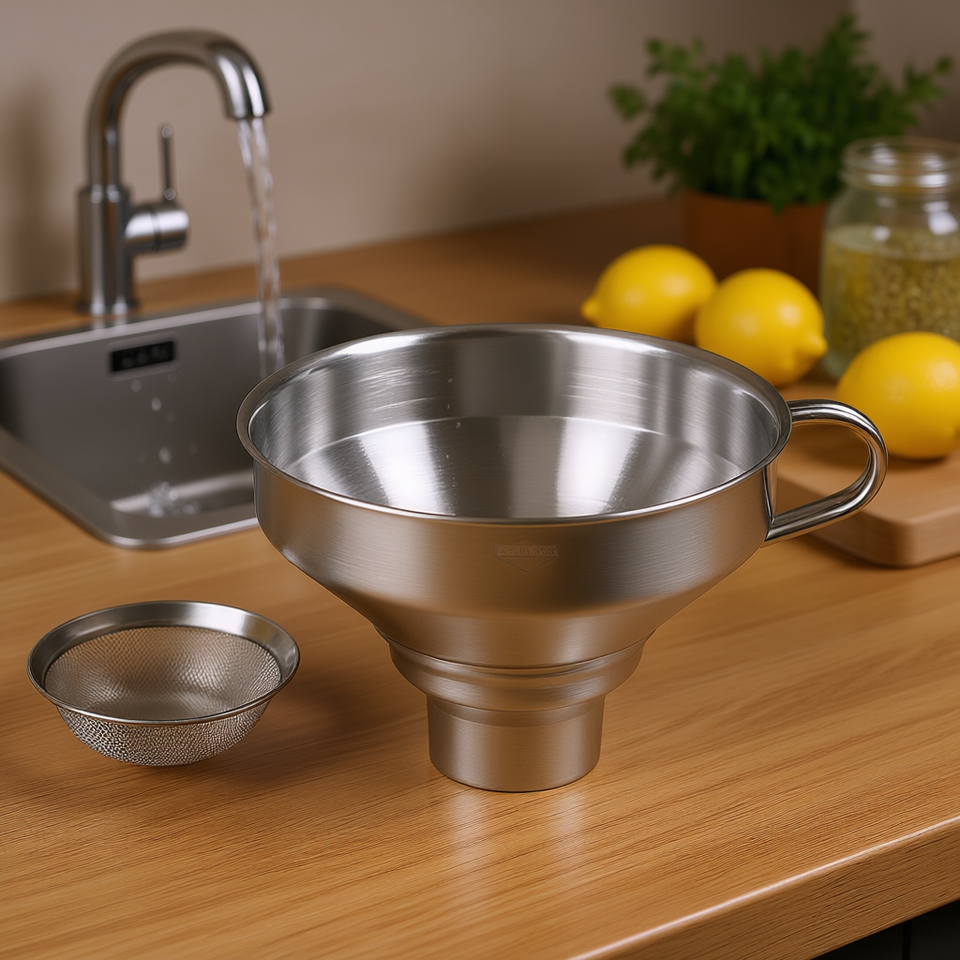 กรวยสแตนเลสพร้อมตะแกรง 9 ซม. 13 ซม. ที่กรองในครัว