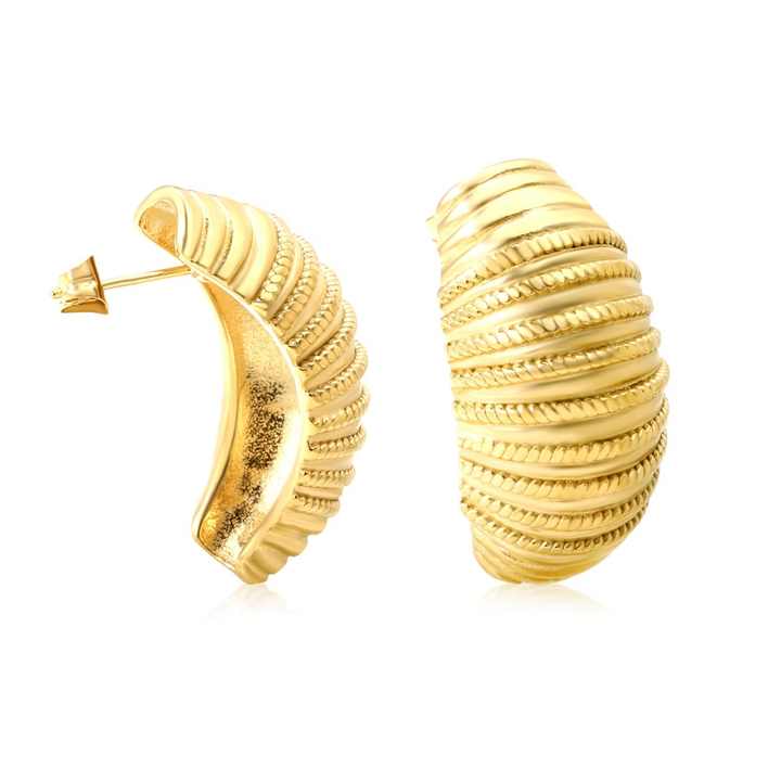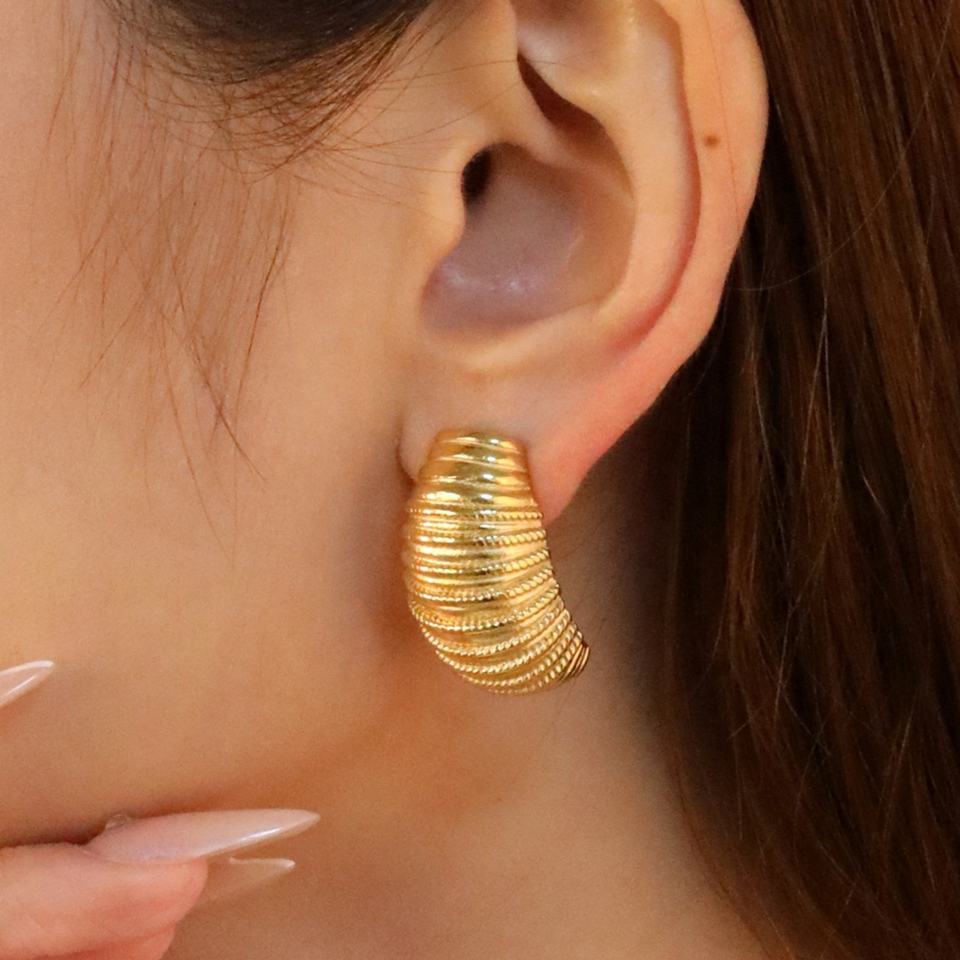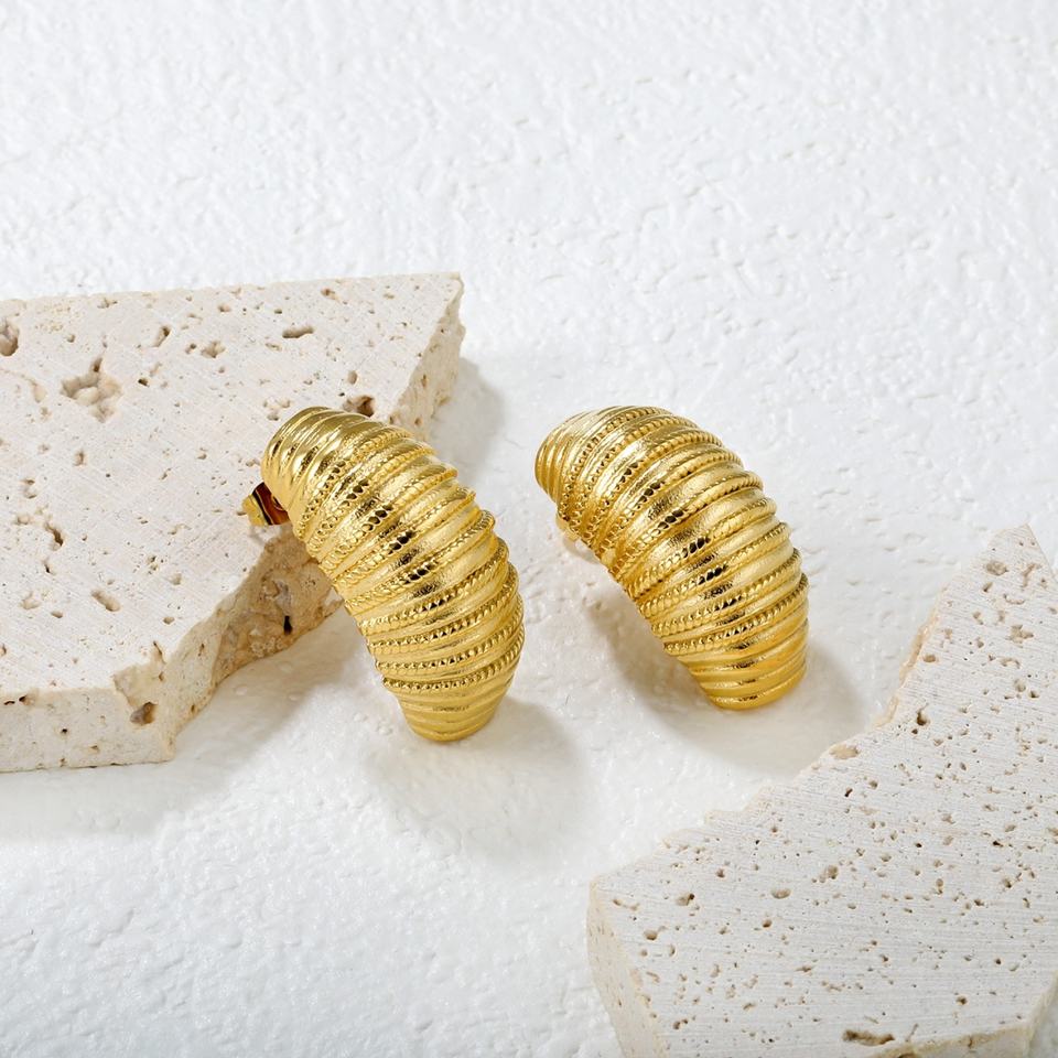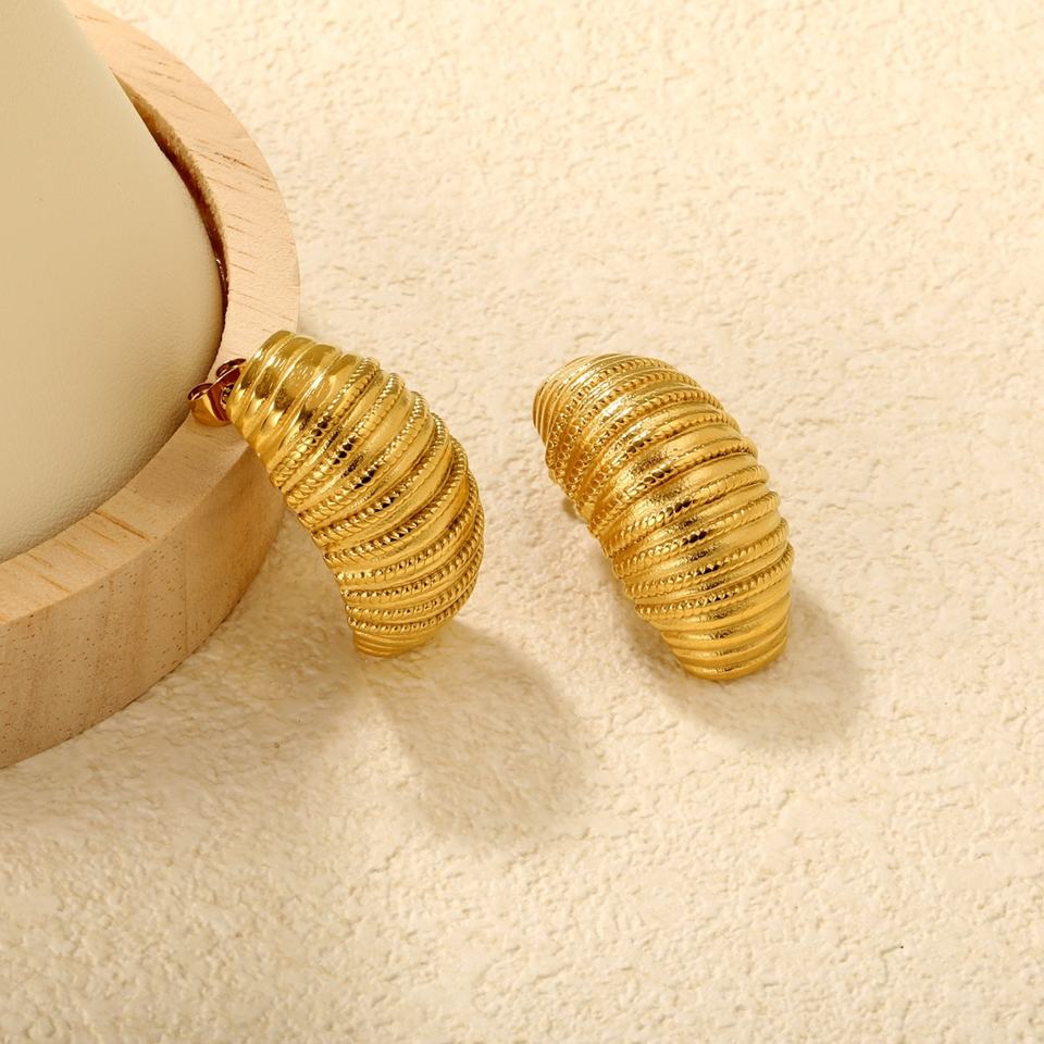 ต่างหูสแตนเลสทรงเรขาคณิตลายเส้นหนา กันน้ำ สีทอง ดีไซน์สร้างสรรค์ ลายขนมปัง ทันสมัย แบบปรับแต่งได้