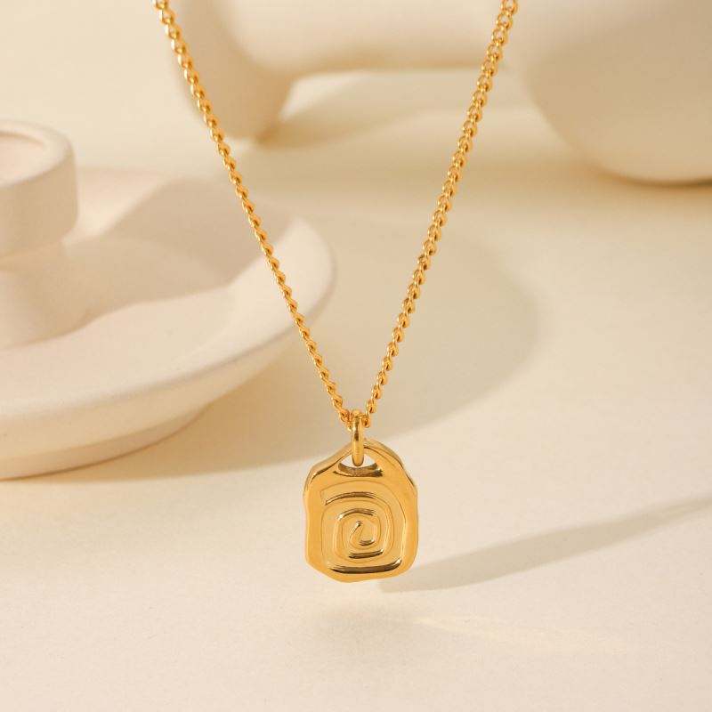 สร้อยคอจี้สี่เหลี่ยมทรงเกลียวทรงเรขาคณิตทำจากสแตนเลส18K เครื่องประดับแฟชั่นชุบทองของขวัญสำหรับผู้หญิง