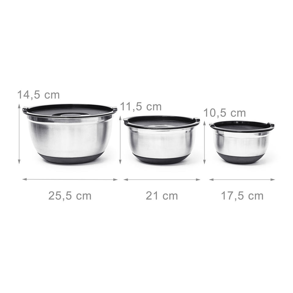 ชามผสมสแตนเลสแบบใช้แล้วทิ้งด้ามจับทำความสะอาดง่ายเครื่องล้างจานวางซ้อนกันได้น้ำหนักเบา