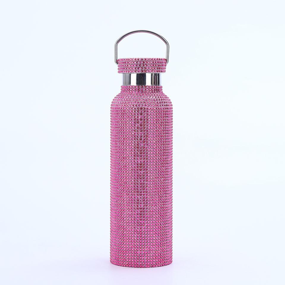 ขวดน้ำสุญญากาศติดผนังสองชั้นรูปแก้วทรงปากกว้างประดับเพชรอเมริกันประกายระยิบระยับทำจากสแตนเลสโลโก้ที่กำหนดเองได้
