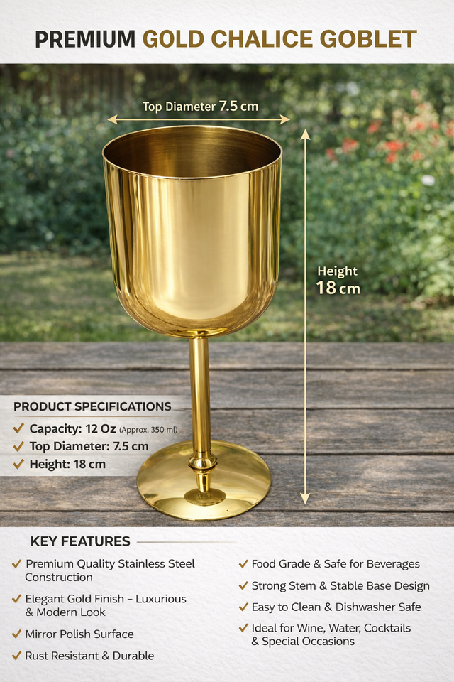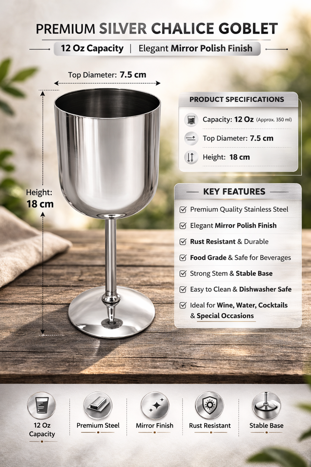 แก้วไวน์แดงสแตนเลส สไตล์คลาสสิก 12 ออนซ์ ปลอดภัยสำหรับอาหาร ผิวสัมผัสแบบขัดเงา เหมาะสำหรับงานปาร์ตี้