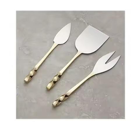 ที่ตัดและปาดชีสแบบแบน ด้ามจับดีไซน์วงแหวนขัดเงาสีทองด้าน ทำจากสแตนเลส ใช้ตัดเค้กและชีส
