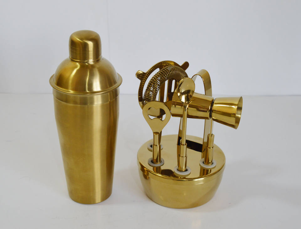 ชุดเครื่องมือบาร์เคลือบ PVD สีทองสเตนเลสสตีล,อุปกรณ์บาร์ขัดเงาพร้อมขาตั้งสีทองอุปกรณ์เสริมบาร์ขัดเงาโลหะ