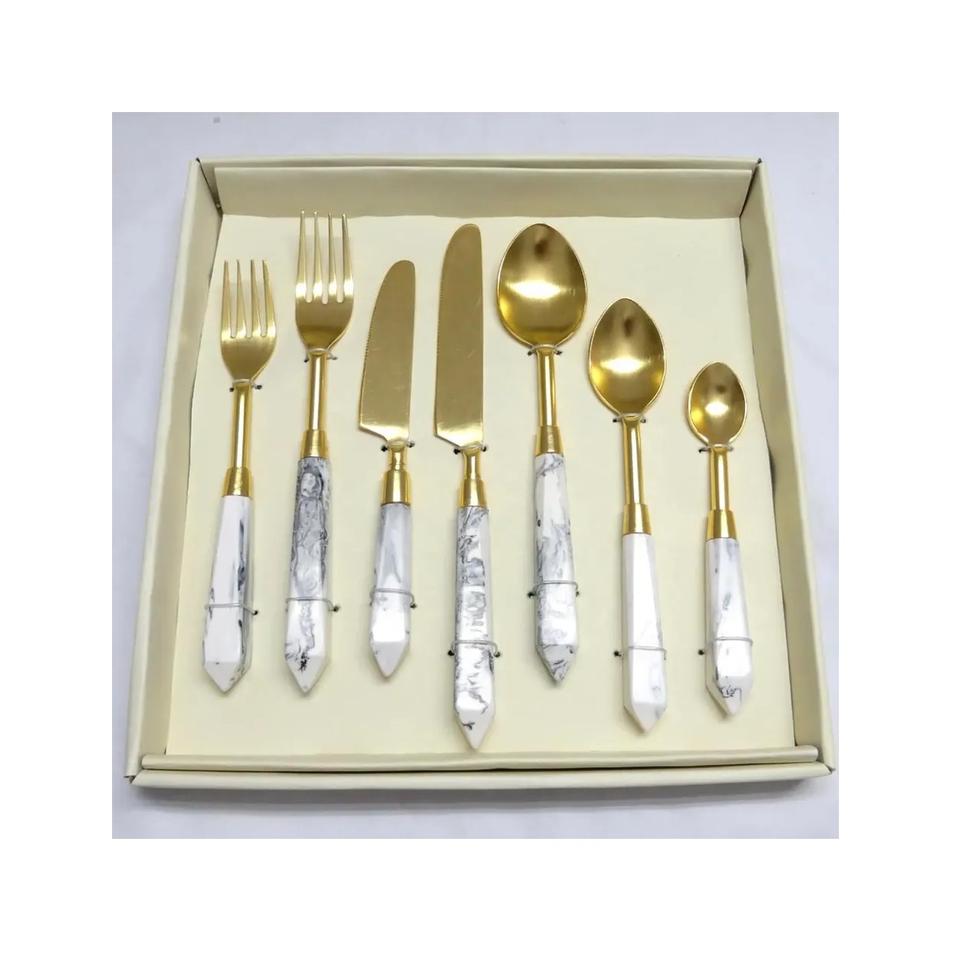 ชุดช้อนส้อมสแตนเลสชุบทอง,ชุดช้อนส้อมโลหะใหม่ล่าสุดชุดเครื่องใช้บนโต๊ะอาหารโลหะ