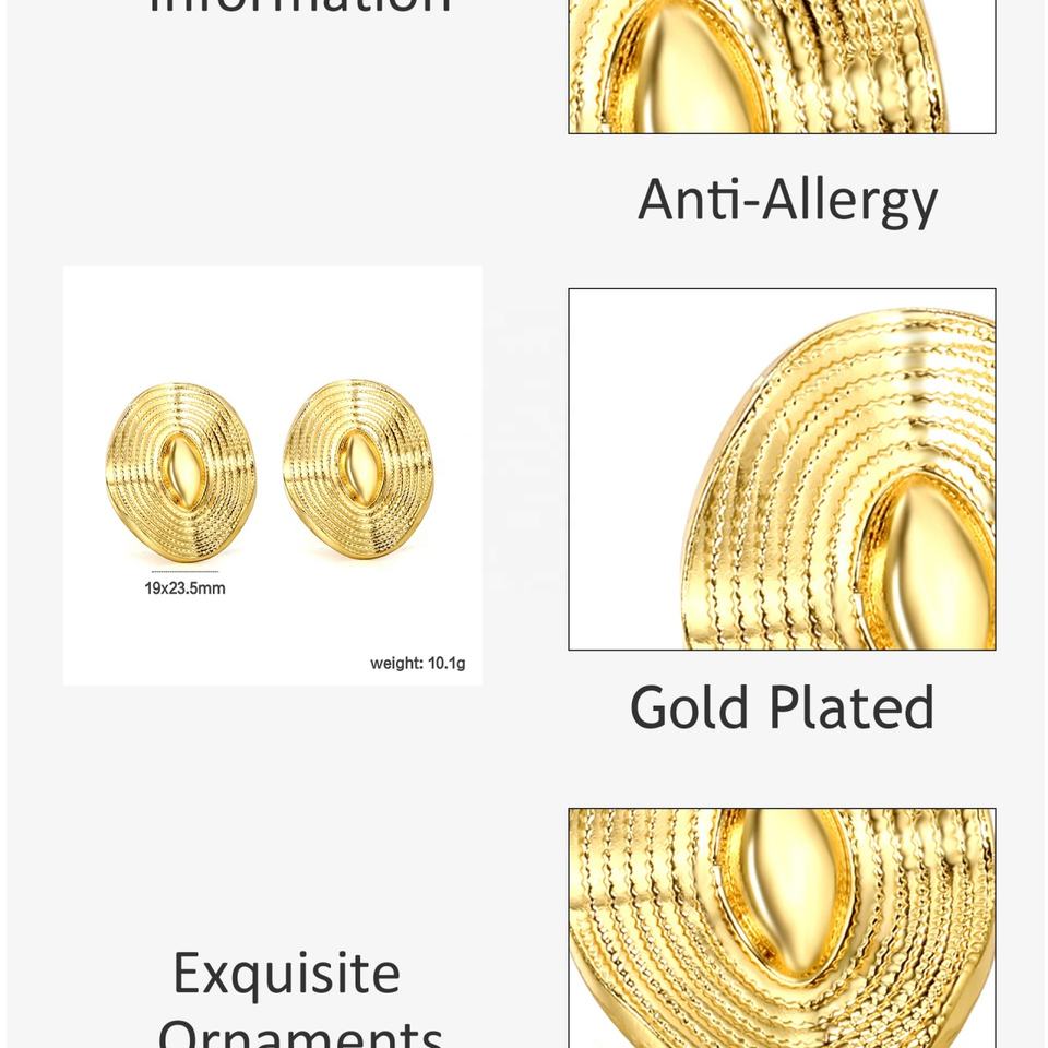ต่างหูสตั๊ดรูปโล่ชุบทองสแตนเลสกันน้ำ ดีไซน์ทันสมัย รูปทรงเรขาคณิต เครื่องประดับแฟชั่นส่วนบุคคล ต่างหูวงกลม