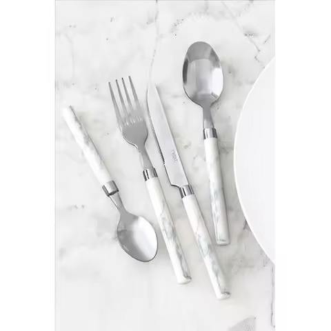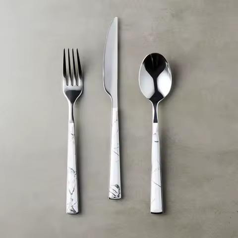 ชุดเครื่องเงินสแตนเลสชุบทองมีด้ามจับหินอ่อนสี่เหลี่ยมยาวมีดีไซน์สั่งทำ