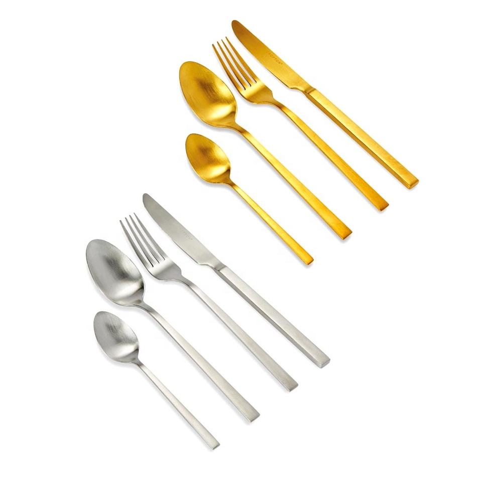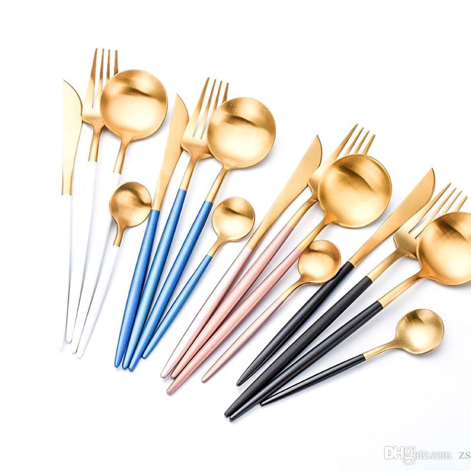 ชุดเครื่องใช้บนโต๊ะอาหารสแตนเลสสตีลหรูหราขัดเงาสีทองพร้อมรูปลักษณ์หรูหราเครื่องใช้บนโต๊ะอาหารคุณภาพสูงสำหรับร้านอาหารงานแต่งงานโรงแรมบ้าน