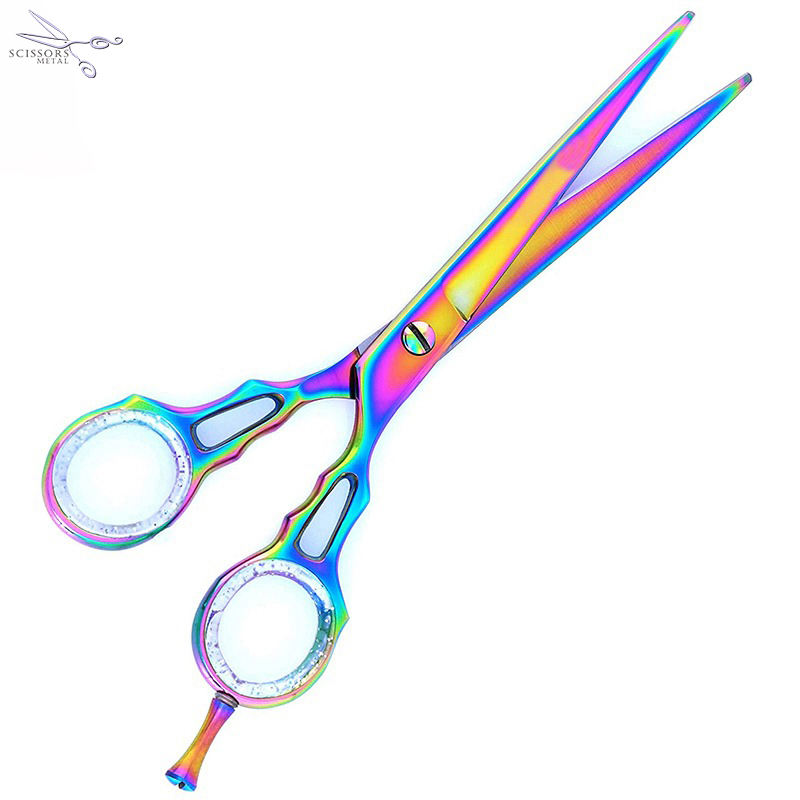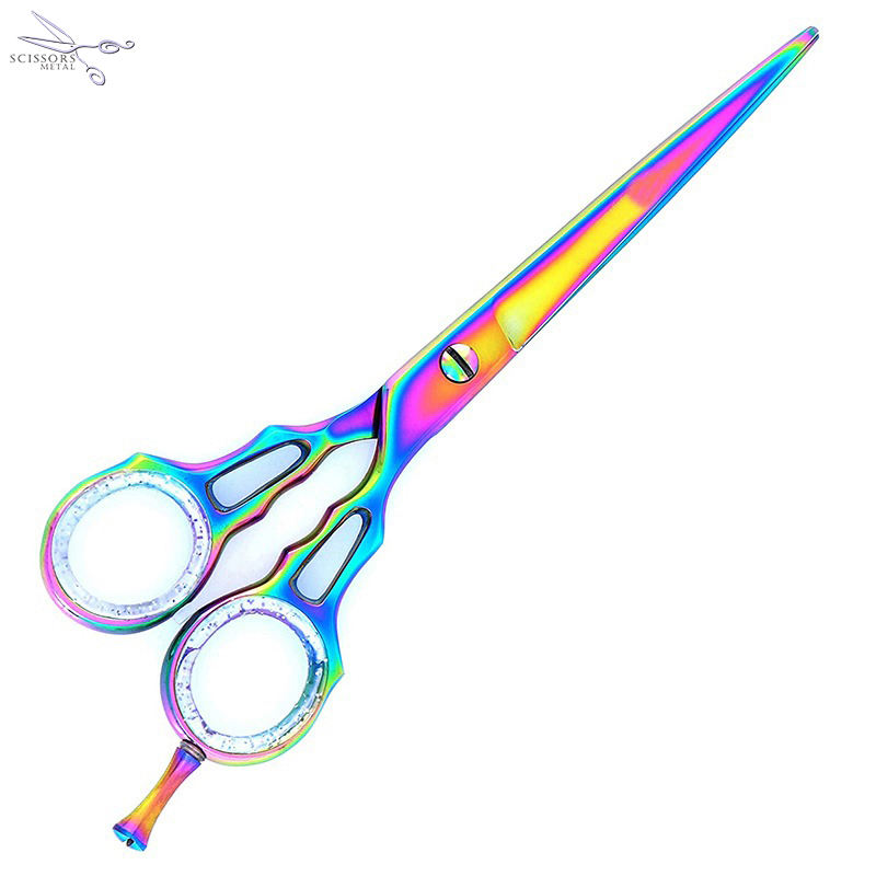 กรรไกรตัดผมสแตนเลสคุณภาพสูง ใบมีดคม สำหรับคนถนัดขวา ด้ามจับขนาดกลาง ใช้ในร้านเสริมสวย ดีไซน์โดดเด่น