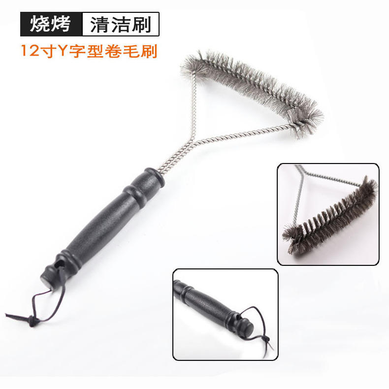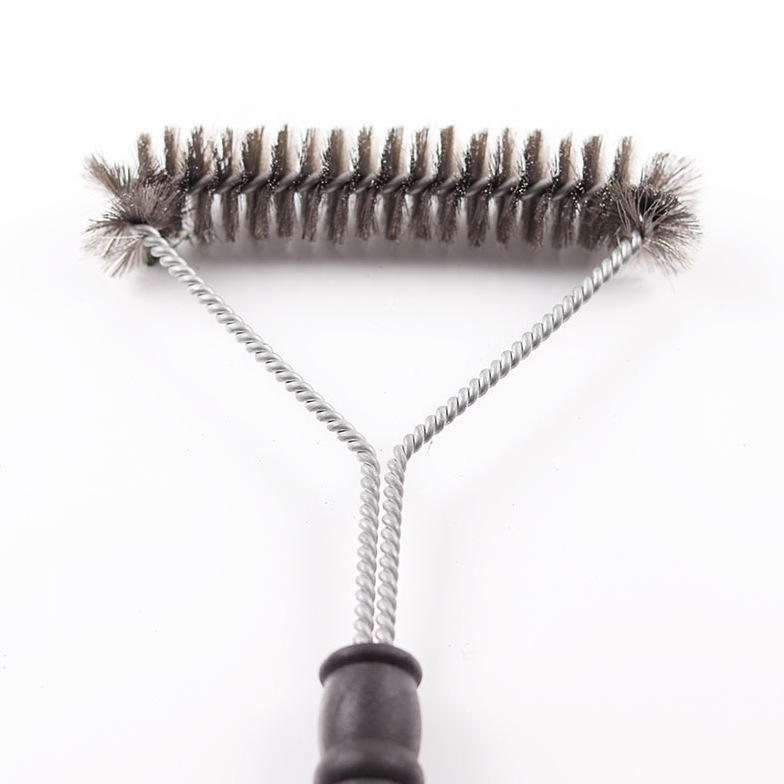 แปรงย่างสแตนเลสพร้อมขนแปรงลวดโค้งงอ เครื่องมือทำความสะอาดบาร์บีคิวอเนกประสงค์ ทนทาน ใช้ในครัวกลางแจ้งได้