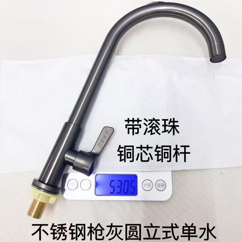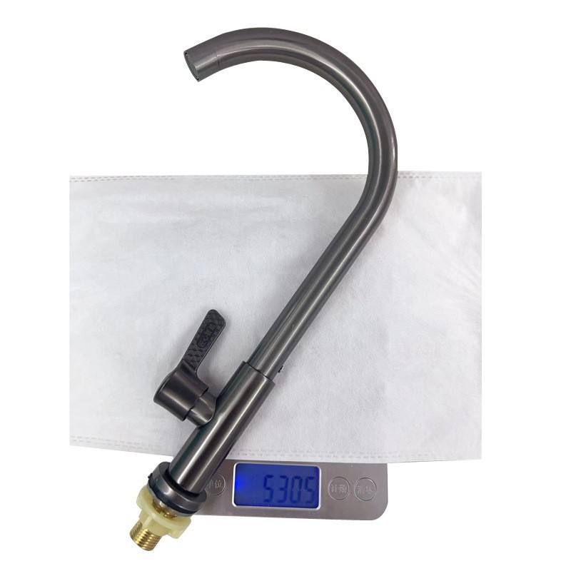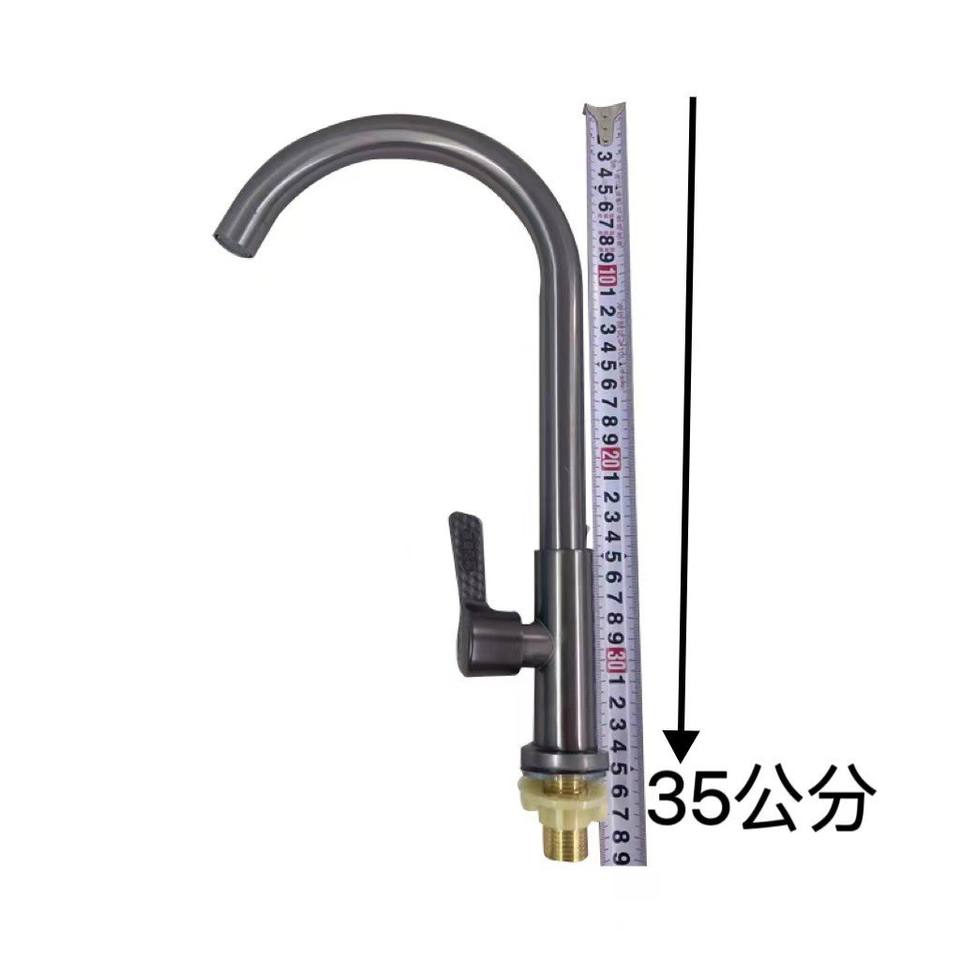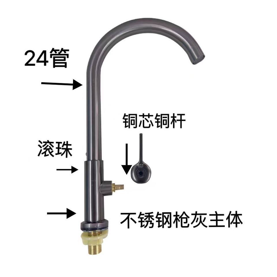 ก๊อกน้ำห้องครัวสแตนเลสสีเทากันเมทัลแบบก้านเดี่ยว ท่อขนาด 24 มม. แกนทองแดง หมุนได้ 360 องศา ติดตั้งบนเคาน์เตอร์ สไตล์โมเดิร์น
