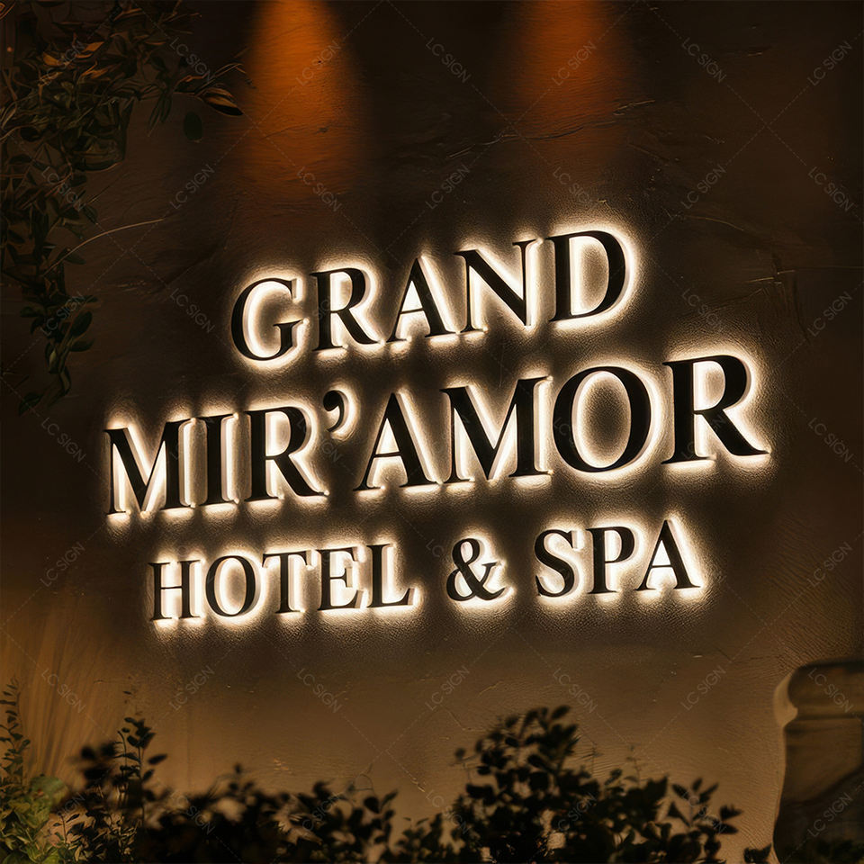 ป้ายโลโก้ตัวอักษรช่องแสงสแตนเลสแบบมีไฟ LED ด้านหลัง สำหรับสำนักงาน ร้านค้า ป้ายตัวอักษร 3 มิติ ป้ายโลโก้ 3 มิติ