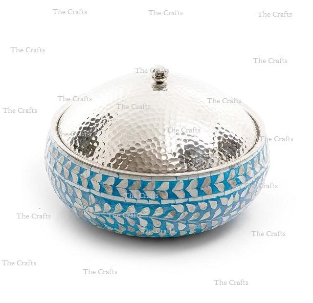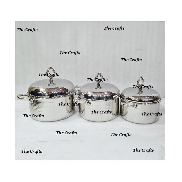 หม้อไฟสแตนเลสแบบใช้ค้อนทุบพร้อมแม่ของไข่มุกทรงกลมสำหรับทำอาหารในอินเดีย