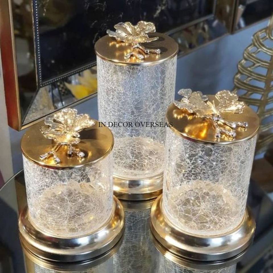 ชุดเครื่องครัว3ถังพร้อมฝาปิดด้านบนเป็นรูปผีเสื้อสีทองขัดเงาเครื่องเงินสแตนเลสสตีล