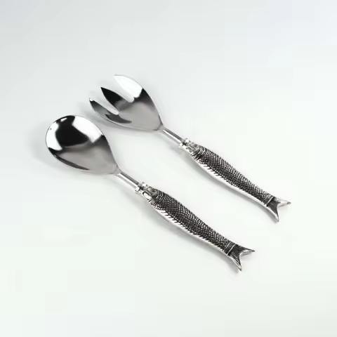 ชุดเสิร์ฟสลัดสแตนเลส ด้ามจับตีขึ้นรูปด้วยมือ ชุดอุปกรณ์เสิร์ฟสลัดสแตนเลส เครื่องมือเสิร์ฟในครัว