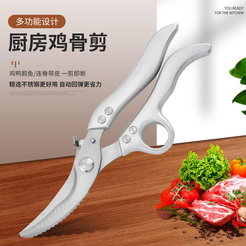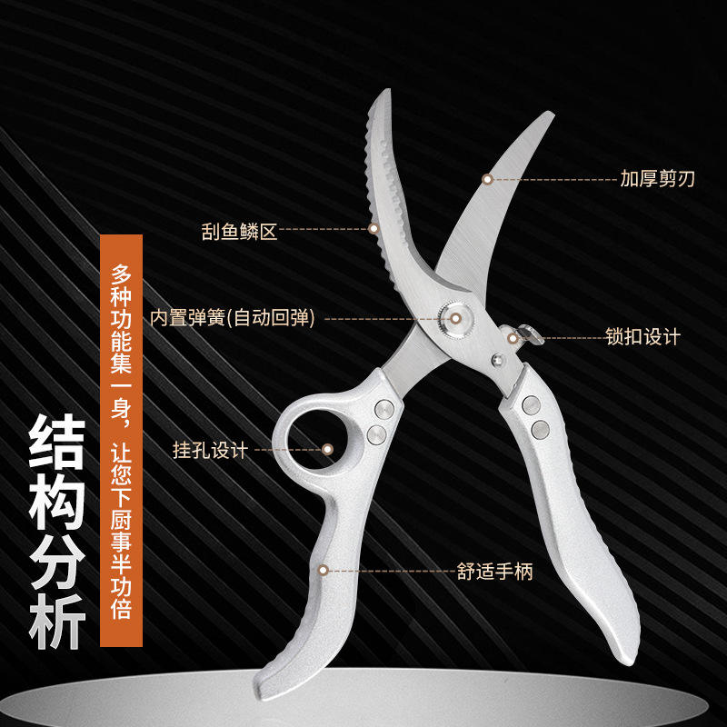 กรรไกรครัวสแตนเลสอย่างดี ตัดกระดูกไก่ ขอดเกล็ดปลาอเนกประสงค์ ผลิตที่เมืองหยางเจียง