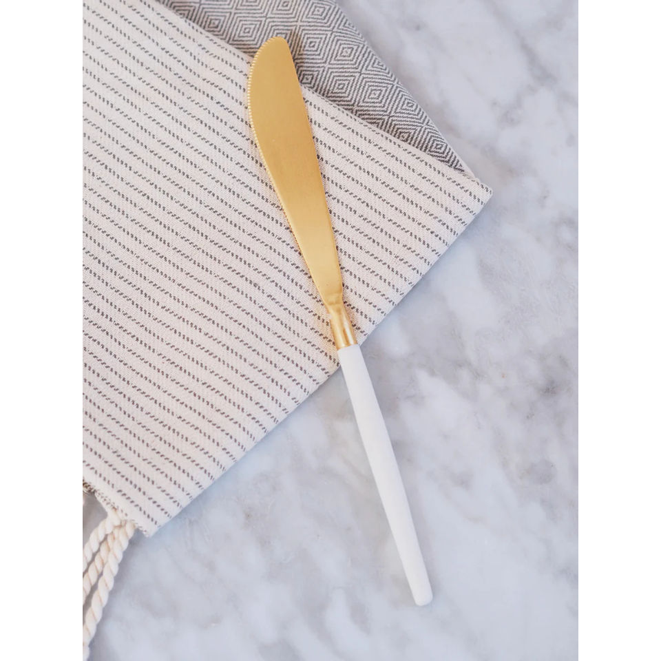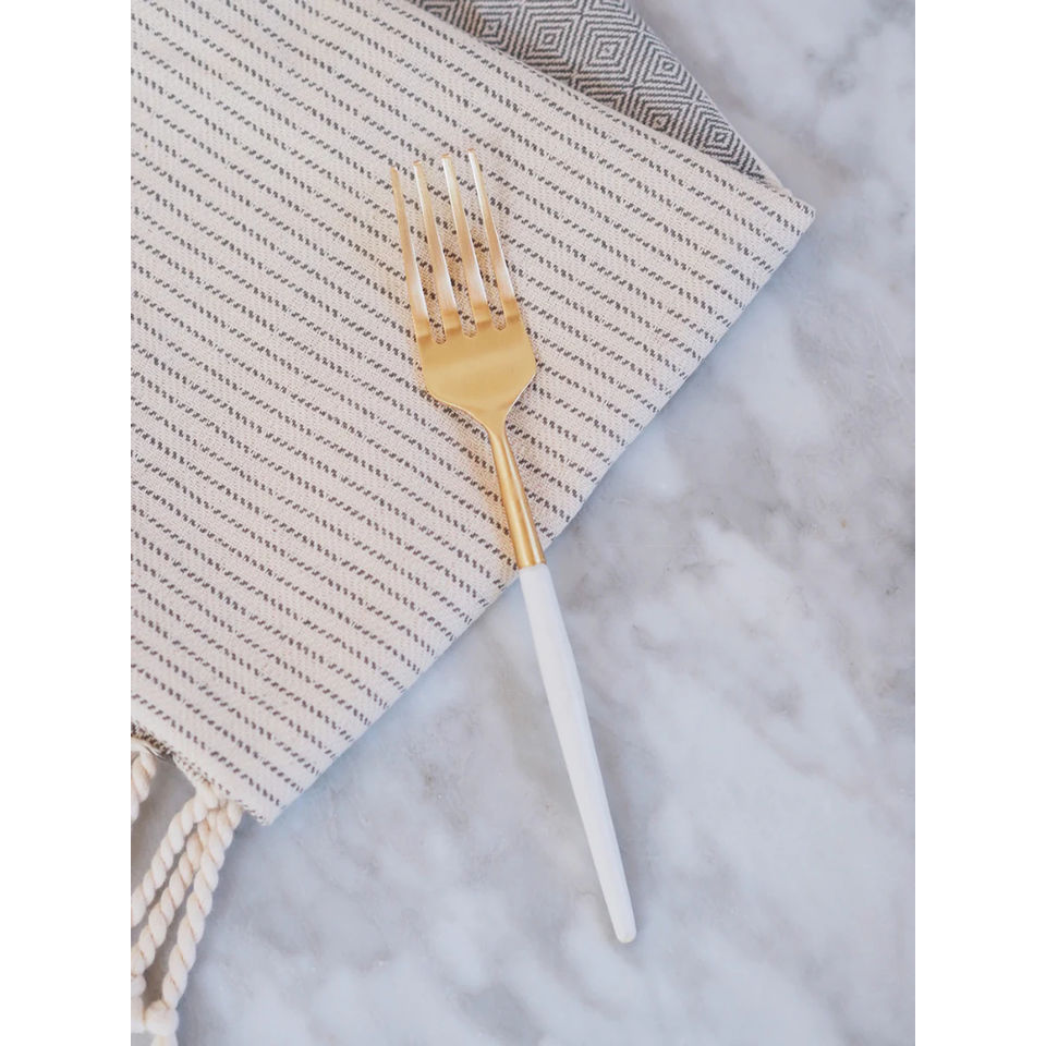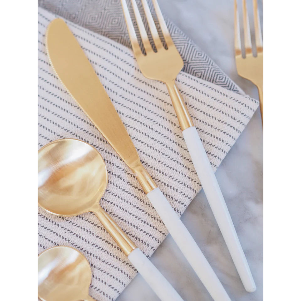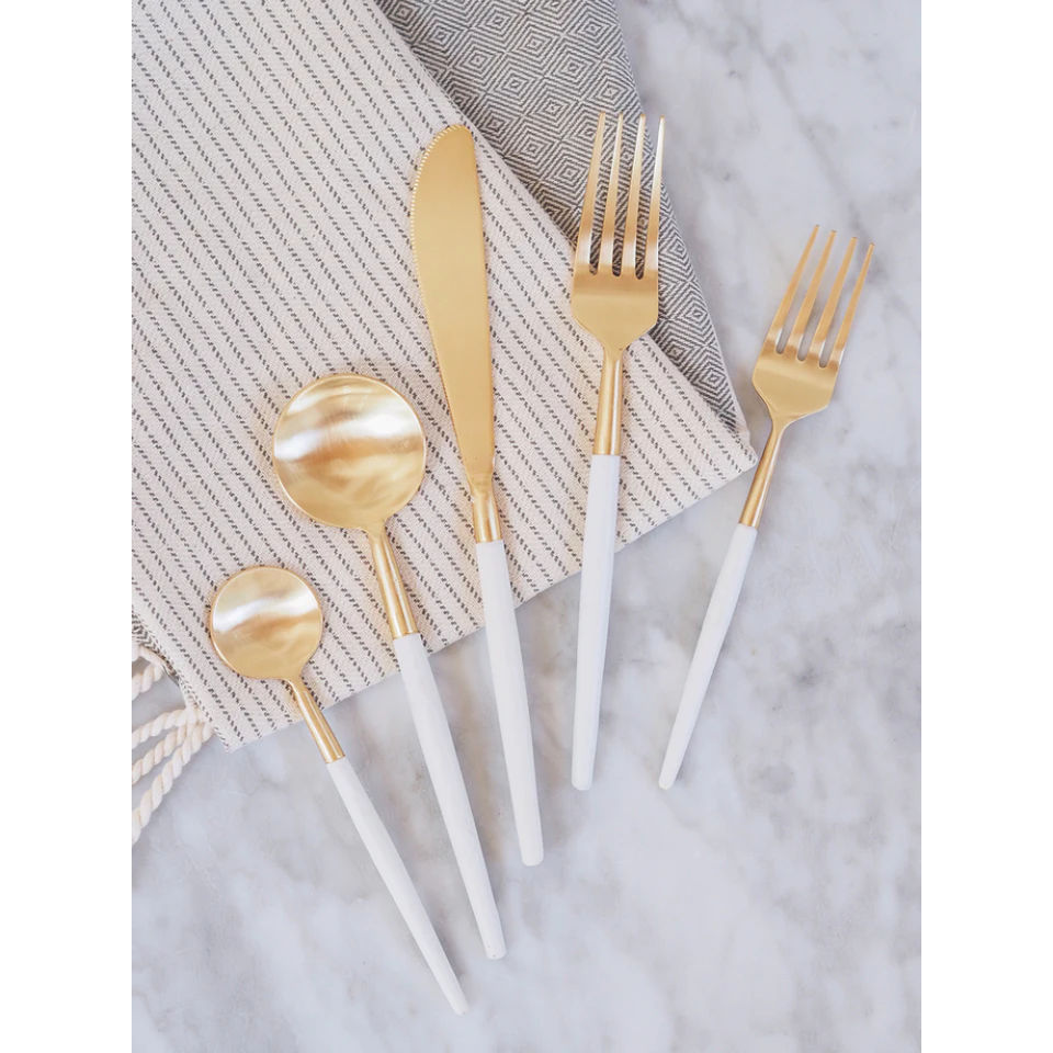 ชุดช้อนส้อมสแตนเลสคุณภาพสูง ดีไซน์โดดเด่น พร้อมด้ามจับสีสันสดใส ด้ามจับสีขาว ช้อนส้อมเงาเหมือนกระจก