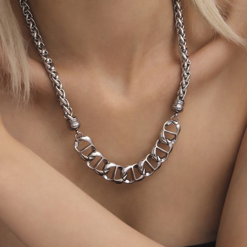 สร้อยคอฮิปฮอปสแตนเลส สไตล์ยุโรปและอเมริกา แฟชั่นหรูหราสำหรับผู้หญิง