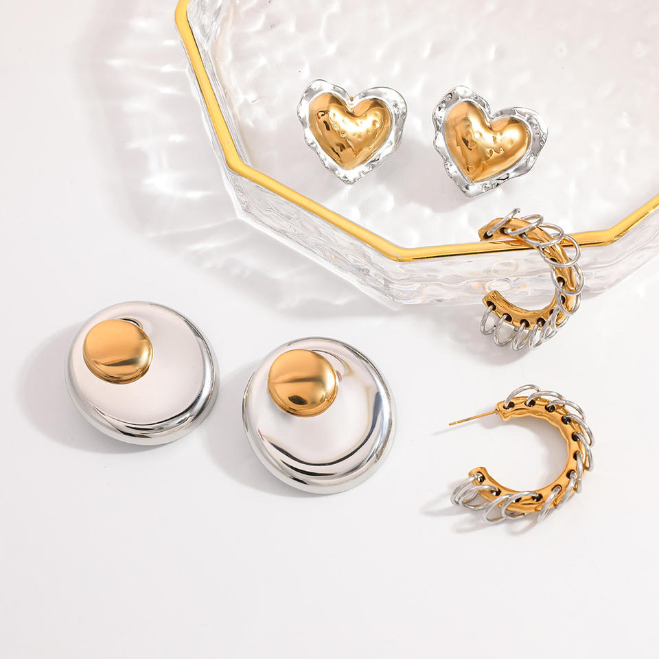 ต่างหูห่วงสแตนเลสชุบทอง 18k สีทอง สีเงิน ดีไซน์รูปทรงเรขาคณิตรูปหัวใจ สำหรับใส่ทุกวัน