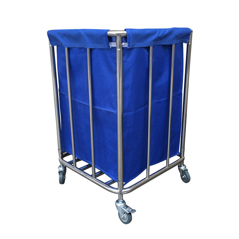 รถเข็นขยะโรงพยาบาลสแตนเลส 520x520x860 มม. รถเข็นผ้าปูเตียงเคลื่อนที่พร้อมล้อสำหรับใช้ทางการแพทย์