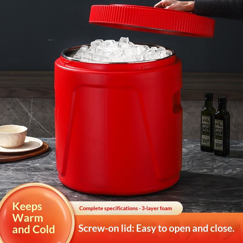 ถังน้ำแข็งสแตนเลส ถังข้าวแบบถอดได้ ถังข้าวสารเชิงพาณิชย์ สีทอง 7 ลิตร ทรงกระบอก สำหรับร้านค้า ถังข้าวต้มอาหารเช้า