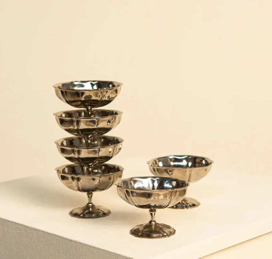 ชามใส่ไอศกรีมสแตนเลสสำหรับเด็กขนาด220มล. ชามใส่ไอศกรีมสำหรับงานเลี้ยงวันเกิดและถ้วยขนมหวานควบคุมได้หลายส่วน